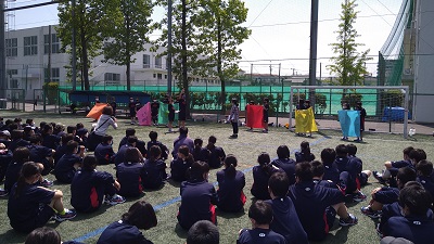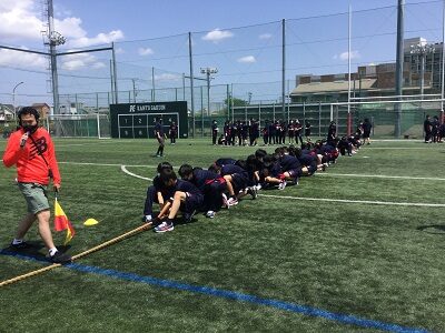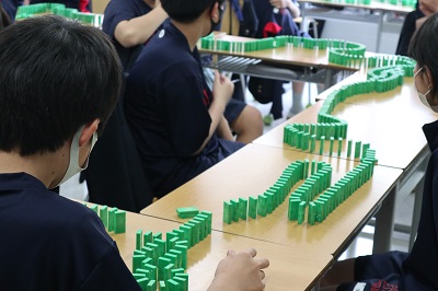 2日目はクラス対抗大縄跳び、綱引き、ドミノ大会。天候にも恵まれ、大縄跳びと綱引きはグラウンドでの実施となりました。各クラス、前日に「クラスの旗」を作成し、作戦会議を持つことでクラスとしてのまとまりを強め、当日は大盛りあがりのレクリエーションとなりました。