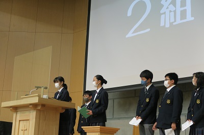 3日目はオリエンテーションを通して学んだこと、感じたことを踏まえ、この一年間の「クラス目標」を決める時間をとりました。閉会礼拝と表彰式の中で、決めた目標の発表を行い、学年全体で共有することができました。