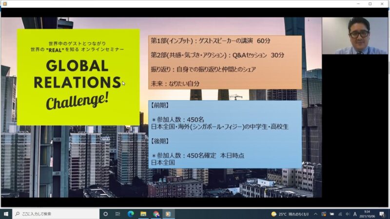 9月30日(木)、4年生(高校1年生)を対象に世界の現状を学ぶ講演会をオンラインで実施しました。