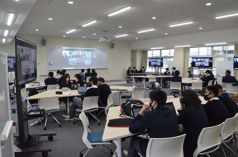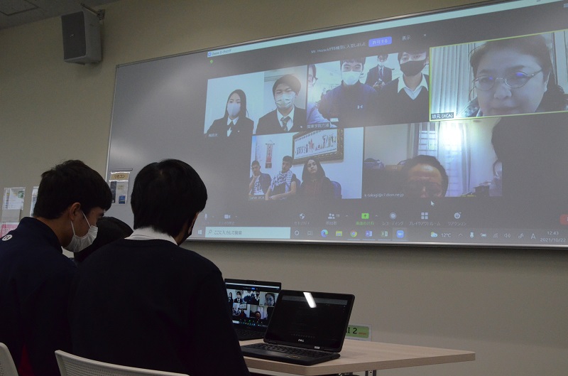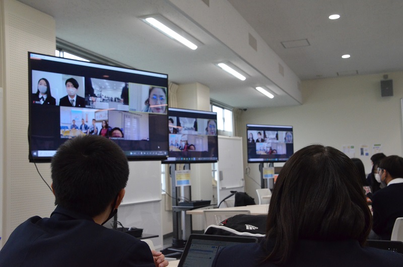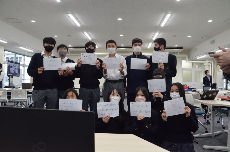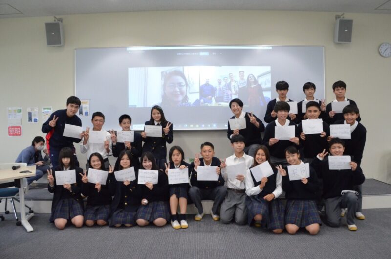 最後には、「他者の幸せのために私たちができること」を双方の生徒・学生一人一人が紙に書いて、画面上で見せ合い、相互理解を深めました。