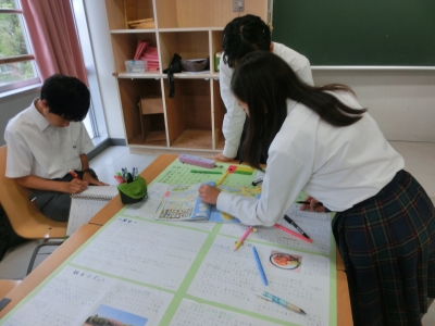 本日は2年生地球市民講座のポスター(模造紙)作成とポスターセッションの発表練習についてご紹介いたします。