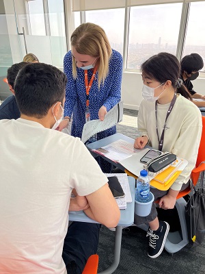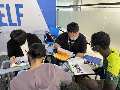 普段の授業でも外国人の先生による授業は受けていますが、大きな違いはクラスメイトの大半が外国人であるということです。他国の生徒さんと組むグループセッションは、この研修での有意義な体験のひとつです。