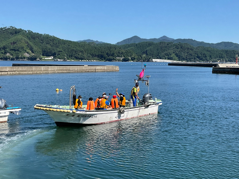 また、震災前に元々小中学校があった場所に建てられた釜石復興のシンボルである釜石鵜住居復興スタジアム(2019年ラグビーワールドカップの会場)を訪れて話を聞き、グラウンドにて地元の選手達とラグビー体験もさせていただきました。また、地元の漁師の方々から海の恵みや被害について、実際に沖に出て学ばせていただきました。