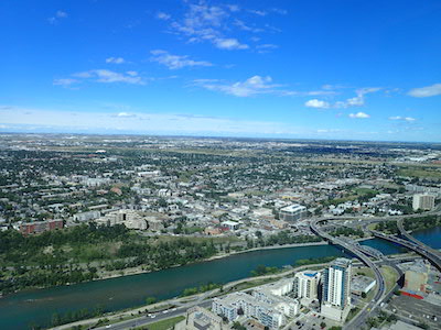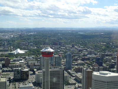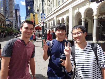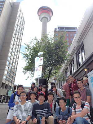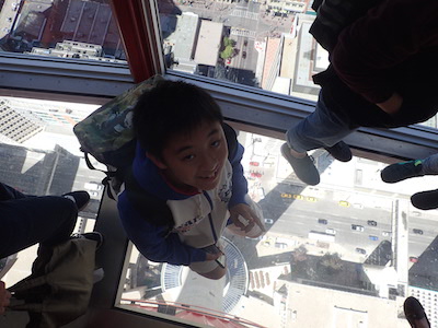 昼過ぎにレッスンを終え、この日は午後のアクティビティで、カルガリータワー・ダウンタウンツアーに行きました。一緒に学ぶホセ君やノドカさん、ベン君も一緒です。カルガリー大学に通うバディのニック君も参加してくれました。カルガリータワーはカルガリーの街が一望できる名所で、ガラスの床でその高さを肌で感じるポイントもあります。生徒たちはいろいろな国の新しい友達とコミュニケーションをとりながら、カルガリーの街並みを楽しんでいました。