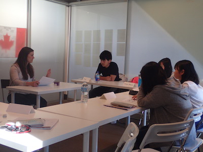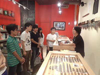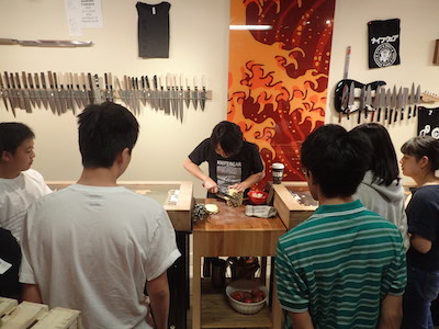 この日はレッスン終了後、アクティビティとして日本の包丁専門店「Knifewear」訪問です。このナイフウェアは、カナダでも成長の著しい会社で、カナダの複数の都市にお店を構えます。日本の包丁の技術は世界に通用するということに目を付け、日本の伝統的なスキルを世界に広げて成功した会社です。