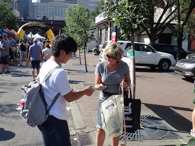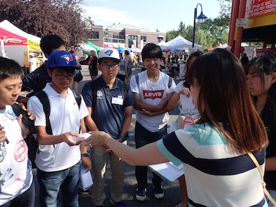 カナダ研修(カルガリー)からの報告その8です。 この日のは日曜日。午前中だけですが、“Pet-A-Palooza”という犬の大好きな飼い主たちが自慢のペットを連れてくるイベントで、ボランティア活動を行いました。このイベントは今年が初めての開催だそうですが、大変な賑わいで、愛犬を連れた多くのファミリーが集まっていました。 生徒たちの仕事は主に ① 入り口で、笑顔でお出迎えをする ② イベントのパンフレットや各ショップのカードなどを配布する ③ 犬たちの飲み水をチェックして無ければ足す ④ ごみを広い清潔に保つ です。生徒たちは、最初は照れながらも、知らない方々に「Good Morning!」「Hello!」と声をかけながらお出迎えをし、パンフレットを配っていました。話しかけられることも多く、ここでも生きた英会話レッスンとなり、大変有意義な経験となりました。 もちろん犬好きの生徒たちは、みなさん自慢の多くの愛犬を眺めたり、交流したりして楽しんでいました。