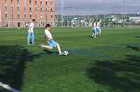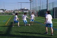 グラウンドでは男子サッカーと女子フットサル、バレーコートでは女子のバレーボール、体育館では男女のバスケットボールの練習をしていました。
