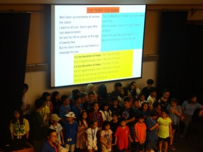午後には毎週金曜日恒例のCelebration of Learningがあり、今週は歌や自作の物語・ウェブページの発表、キーワードとなる英単語を使った例文の発表、学校の近くの海辺で拾ったゴミでオブジェを作成したりと様々な成果が披露されていました。