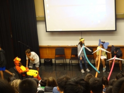 授業で勉強したことをパワーポイントでプレゼンしたり、先生が授業の様子を撮影してビデオを流したり、劇のパフォーマンスをしたりなど、様々な発表があります。