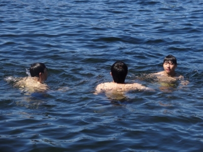 キャンプ場の周りをハイキングしたり、湖で泳いだり、ボートに乗ったり、バレーボールやバスケットボールをしたり、筋トレしたり(?)…。