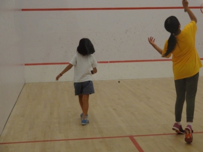 この日の夜は、バレーボール、サッカー、バスケットボール、スクオッシュ(壁打ちテニス)のグループに分かれて汗を流していました。