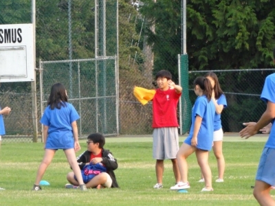 下の写真は、この研修の参加者にとってはもうおなじみの、‘Catch the flag’というドロケイのようなゲームです。制限時間内に相手の陣地にある宝物をたくさん取ってその数を競います。