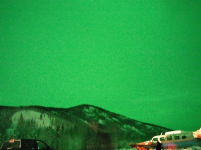 そのうちわずかですが、オーロラが出現したため、あわてて写真を撮りました。ここは周りの明かりが一切ないので絶好の観測地なのですが、今回は発達したオーロラを見ることはできませんでした。1時半すぎに山頂を出発し、帰り道もガタガタを揺られながら約20分間でチェナホットスプリングスに到着しました。