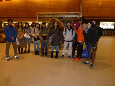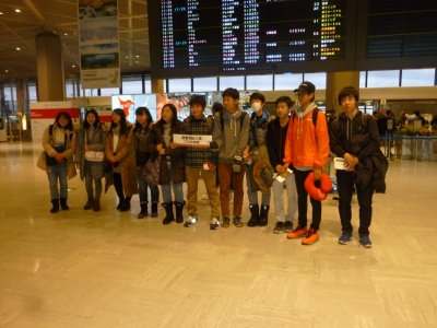 1月29日(日)15時30分に、成田空港第一旅客ターミナル紂王にあるガラスタワー付近に集合し、早速搭乗手続きをしました。保護者の方も見送りに来ていただき、集合写真を撮っていざ出発です。