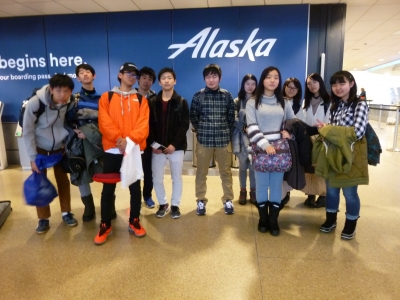 成田空港17時30分発のシアトル行きの便に搭乗し、定刻通りにシアトルの空港に到着。空港では各自で軽食を購入して食べ、フェアバンクスへの便に乗り継ぎ、約3時間でフェアバンクスに到着しました。