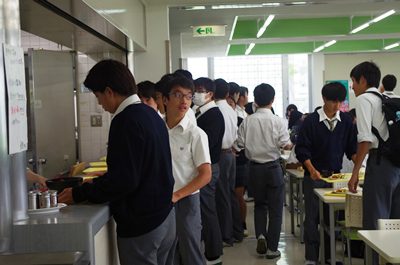 日替わりランチのほかにもカレーやとんかつ、ラーメンなどの定期メニューも多くあり、多くの生徒たちでにぎわっています。