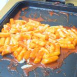 隣はバランスよく辛いトッポギ。上にチリソースがかかり少しピリッとしましたが、後からチーズが追いかけてきてやわらぎ、おいしかったです。インスタ映えするリンゴジュース、リンゴの味が口の中に広がっていました。