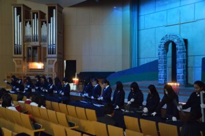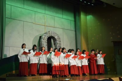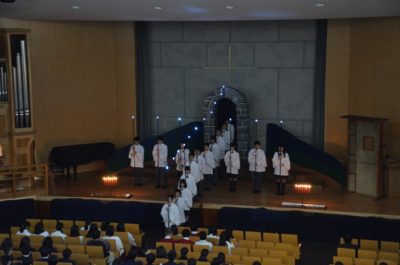 この日のために結成された聖歌隊による賛美、有志の生徒たちによるトーンチャイムの演奏など、普段の礼拝とはかなり異なる雰囲気で行われました。