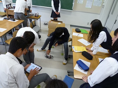 離れたところにあるロボットが動き始めると皆驚きましたが、次第に慣れて、最後は楽しみながらロボットを動かしていました。