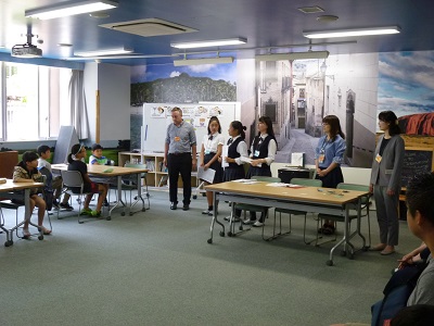 KGM Kids Englishは、本校のGET(Global English Teachers)と一緒に、楽しみながら英語を学ぶプログラムです。カリキュラムは本校オリジナル。授業にはGET以外に、留学経験があって英検準2級以上に合格している本校の生徒達もサポーターで参加しています。