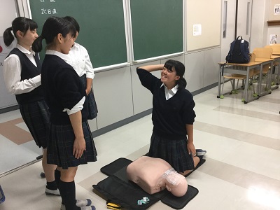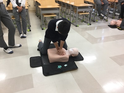生徒達は前回よりも上達しており、救命活動への意識もより高まり、緊張感を持って取り組むことができました。いざというとき、AEDが現場に到着するまでのわずかな時間にできることを何度も練習しました。