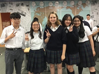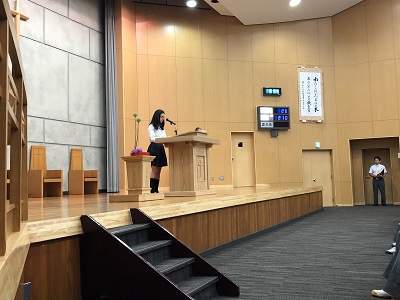 本校に通学する最終日には、朝の礼拝後に全校生徒へメッセージがありました。異国の地で学び、成長する彼らの様子を間近で見てきた本校の生徒達は大いに刺激を受けたようです。