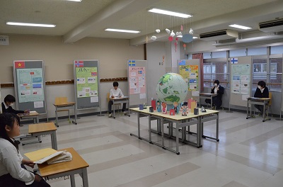 2年生は地球市民講座で学んだことの発表・展示を行います。「Be A GLOBAL CITIZEN」をキーワードに、生徒達が調べた世界の国々についてのポスターセッションを行います。