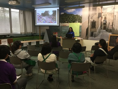 English Loungeでは、今年度これまでに実施した選択制グローバル研修へ参加した生徒達の発表が行われました。