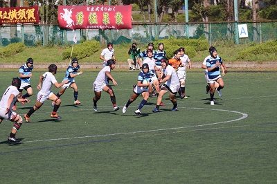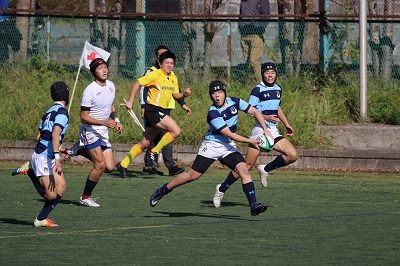 後半は、本校のキックミスから日大高にトライを許し7-7の同点に。その後のボール支配率は日大高が圧倒的でしたが、1年間取り組んで来た本校のディフェンス陣のタックルが炸裂し、日大高の攻撃を何とか止めました。逆に本校が1回のチャンスを生かしトライ。終盤にもゴール前でダメ押しのトライをフォワードがもぎ取り、26-7で勝利しました。