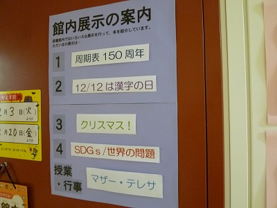 本校の図書館では季節や授業に合わせて様々な展示を行っています。