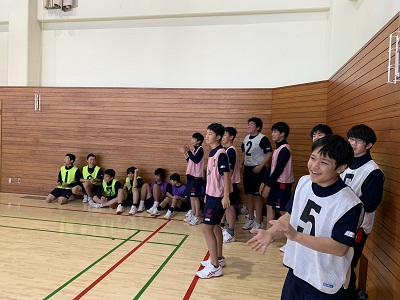 教員からのルール説明の後、いよいよクラス対抗戦です。全員が試合に参加できるようなメンバー編成になっているため、全員で力を合わせることが求められます。