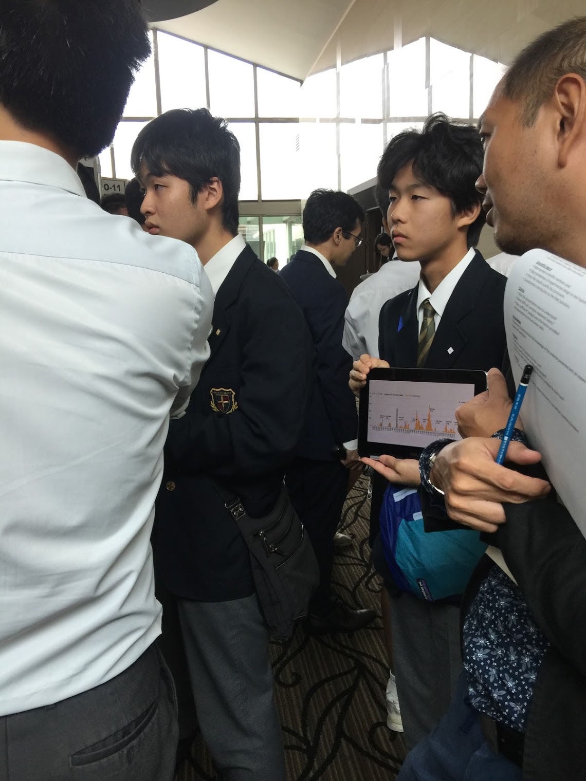リバネスが発行している『教育応援』という冊子のvol.44に掲載された今大会の開催報告には、「テーマは、身近なふしぎを取り上げたものから、大学の研究とも遜色ないような研究まで幅広いテーマがカバーされた。また、インド、タイ、フィリピンの学校からは住んでいる地域、産業が抱えるテーマに沿った研究がされており、異なる研究テーマ・興味は、お互いに良い刺激となっていたと思う。共通言語の英語を駆使してそれぞれコミュニケーションを取っている姿があちこちで見られた。」と書かれていました。本校の研究は生徒が身近なことから思いついたテーマであり、大人が最先端の研究を生徒に指導したものではないのでかえって好評だったようです。しかし、英語力に自信のない部員もいて、各国の生徒とのコミュニケーションは中々取れなかったようです。「あと少しの英語力で大きく世界が広がる」と実感したようです。これからの学習意欲につながったと思います。