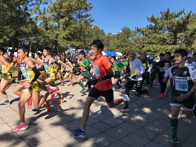 中学生女子は3kmの部、それ以外は全員5kmの部に出場しました。この日は天候に恵まれ、絶好のランニング日和となり、学生だけでなく一般の方々も多く出場されていました。