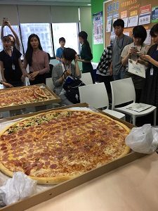 授業は朝9:00から始まります。一人一人にブースが与えられていて、そこで先生を待ちます。真面目な先生やフレンドリーな先生など、数人の先生が代わるがわるブースにやってくるので、生徒たちは飽きることなく集中して授業を受けられます。Google Mapを見ながら会話を楽しんだり、文章を読んで発音を直されたりと、個人のレベルに合わせた内容なので、無駄な時間が無く、すべてがとても有意義でした。最終日のプレゼンテーションでは、自分の作った文章を読み上げました。何人かは暗記してきて話した生徒もいました。最後には先生たちとのピザパーティーで楽しい一時を過ごし、学校を後にしました。