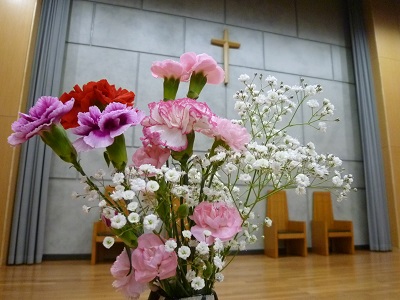 礼拝堂の正面に十字架があります。イエス・キリストはこの十字架にかかり死んでしまいました。その2日後(日曜日)の朝、イエスの遺体に油を塗りに行くために3人の女性が墓に向かいました。驚いたことに墓は開けられており、そのうえ中にイエスの遺体がありませんでした。そこに立っていた見知らぬ一人の若者が「あの方は復活なさって、ここにはおられない」と言います。事態を受け止められない女性たちは逃げ帰り「誰にも何も言わなかった」と聖書に書いてあります。もしそれが本当なら、イエスの復活を誰も知ることがなく、キリスト教は存在しなかったでしょう。しかしキリスト教は誕生し、今も存在します。ということは、彼女たちがこの「復活」の出来事を誰かに伝えたのだと考えられます。彼女たちは「復活」をどのように受けとめたのでしょうか?