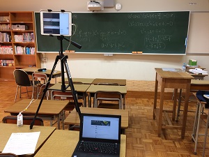 しかし校内では、すでに機器を持っている学年のオンラインホームルームや映像授業など、生徒の姿は見えずとも、あちこちから生徒たちの声が聞こえてきます。この通信を打っている私もGoogle meetを使って授業をしています。