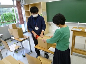 本校では、週明け11日(月)から学年ごとの時間割にそって学習を進めていきます。前回の広報室通信でお知らせした通り、2年生のみなさんにはChromebookを発送しました。そろそろ手元に届いている頃だと思います。機器以外にも、新たな教材が各学年で準備され、週明けにかけて発送作業が行われます。