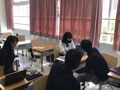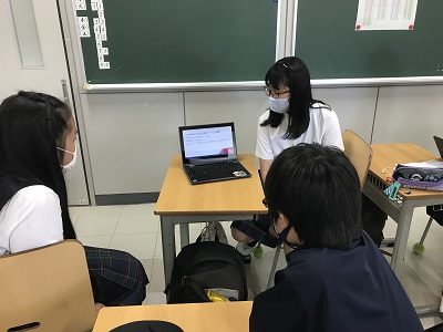 2年生は夏休みに、「人間の活動を起因とする地球環境の変化がもたらす社会的課題」と、その社会的課題に直面しているフィールドを発見し、詳しく調べてレポートにまとめました。この日は午前中の授業(4コマ)をすべて地球市民講座とし、集中的に学習活動を行いました。
