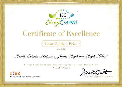 GLEコース IIBCエッセイコンテストにて奨励賞を受賞しました