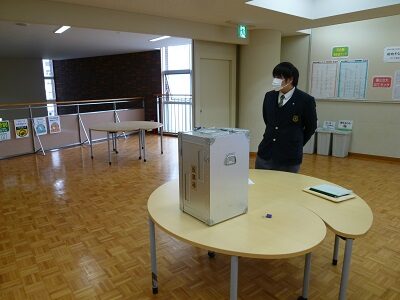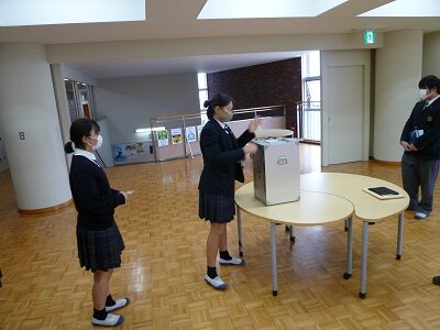 先日、2021年度の生徒会選挙が行われました。 これまでは、中高それぞれで礼拝堂に集合し、立候補者の演説を聴いて投票する流れになっていました。今回は、新型コロナウイルスの影響を考慮し、立候補者の演説をオンラインで配信しました。今年度はなかなか実施できなかった学校行事、特に文化祭の開催に向けた決意を表明する候補者が多くいました。 投票はクラスごとに行い、金沢区の選挙管理委員会からお借りした実際の投票箱を使って投票を行いました。